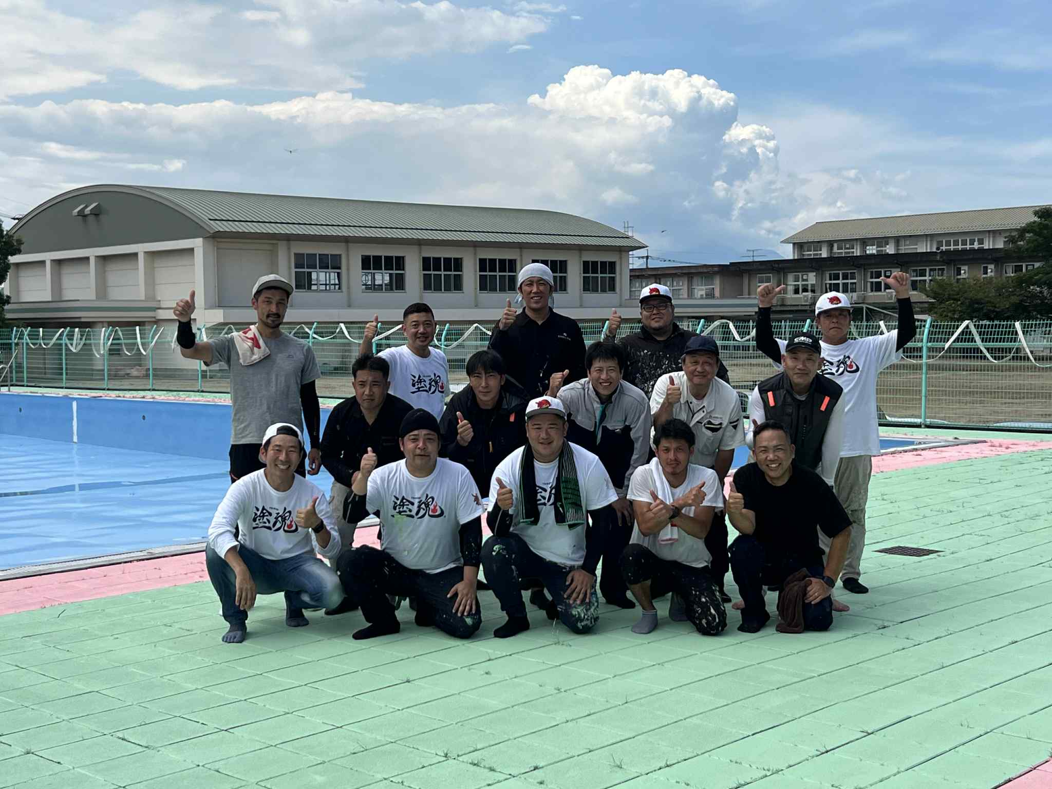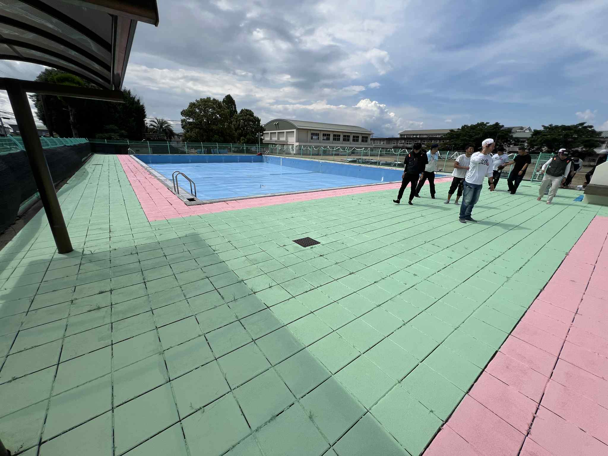 気候変動の影響からかプールサイドがとても熱く、足の裏 お尻を火傷する生徒がいるとのことで遮熱塗装ボランティアをさせていただきました。