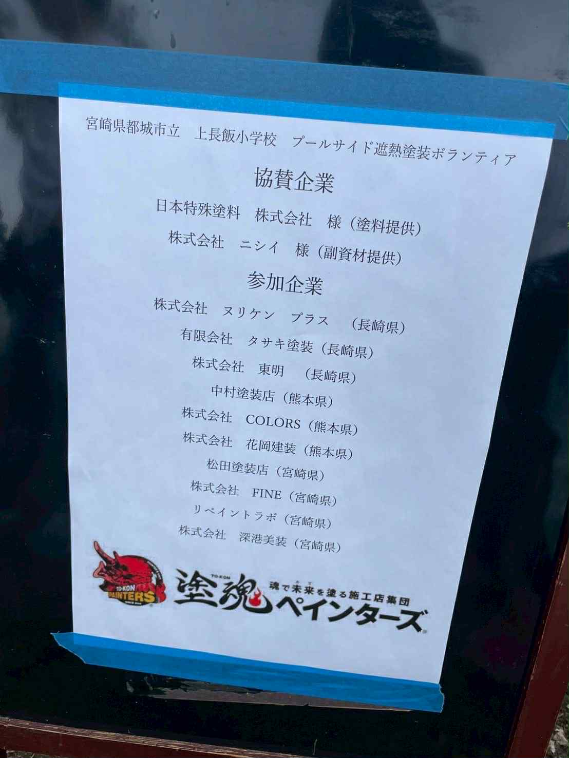 宮崎県都城市立上長飯小学校プールサイド遮熱塗装ボランティア